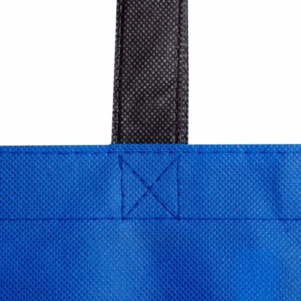 90gsm standard size non woven shopping bag with large gusset features a stylish design of black bag with partly coloured front and back and a large front pocket attached. It is made of 90gsm new polypropylene material which is more durable and stronger. A great promotional tote bag for your next event.