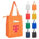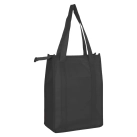 Aluminium foil PE foam thermal insulated non woven cooler bag with zipped top closure front slip pocket and reinforced handles. It is made of 90gsm new polypropylene material which is more durable and stronger. Capacity 10L.