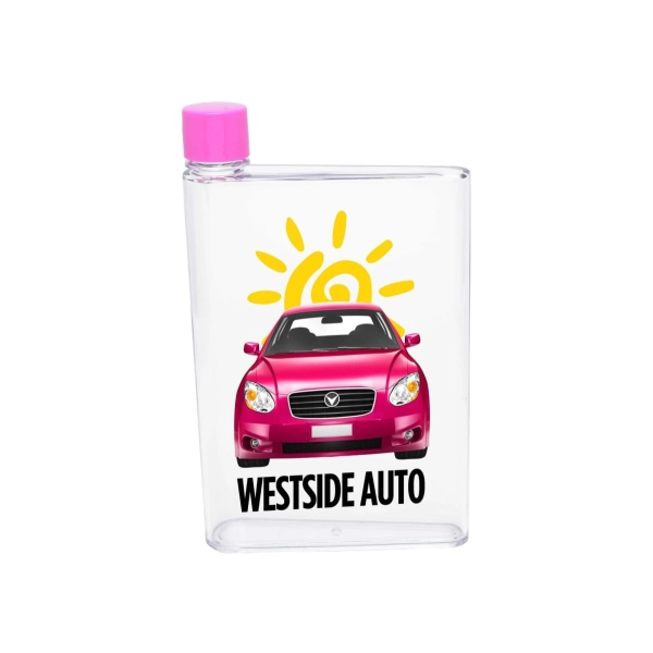 Looking for a water bottle with a difference… then look no further. Notepad Water Bottle Pro, made from BPA free materials is easy to carry and fits perfectly into a handbag or satchel, alongside your notepad. This product can even be printed in full colour for maximum impact. Available in clear with black, blue, grey, pink or green lids. For use with cold liquids only.