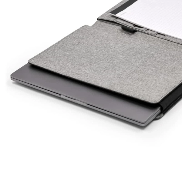 The Noty Folio Eco is where style meets sustainability. Crafted from recycled PET bottles and paired with an FSC-certified paper notepad, it’s a premium business essential designed for professionals on the move. Inside, you’ll find space for an A4 notepad, an expandable pocket that fits tablets or laptops up to 13”, a fold-out phone or tablet stand, a pen holder, and multiple compartments for business cards and travel essentials. Every detail is built for convenience, helping you stay organised in the busiest of lifestyles. Versatile, practical, and eco-conscious, the Noty Folio Eco makes a thoughtful corporate gift with a touch of quality and responsibility. Material: Recycled PET bottles and FSC-certified paper.