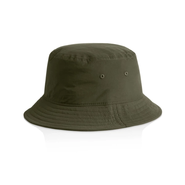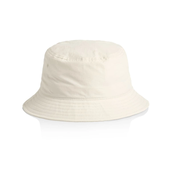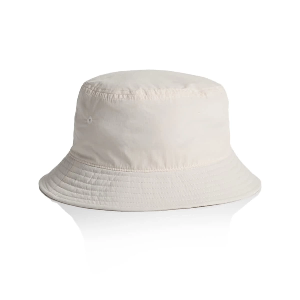 Presenting the AS Colour Nylon Bucket Hat, crafted from light to mid-weight 100% quick-dry recycled nylon. It includes a reinforced brim with stitching detail and side eyelets, ensuring durability and ventilation. Featuring a tear-out AS Colour label, it's designed for universal fit and comfort.