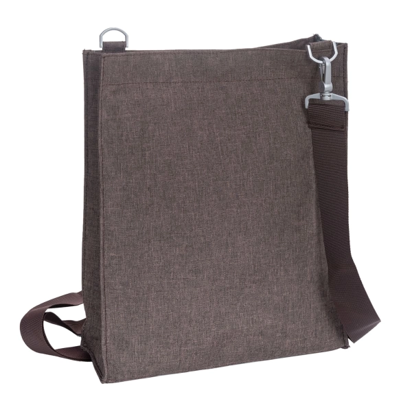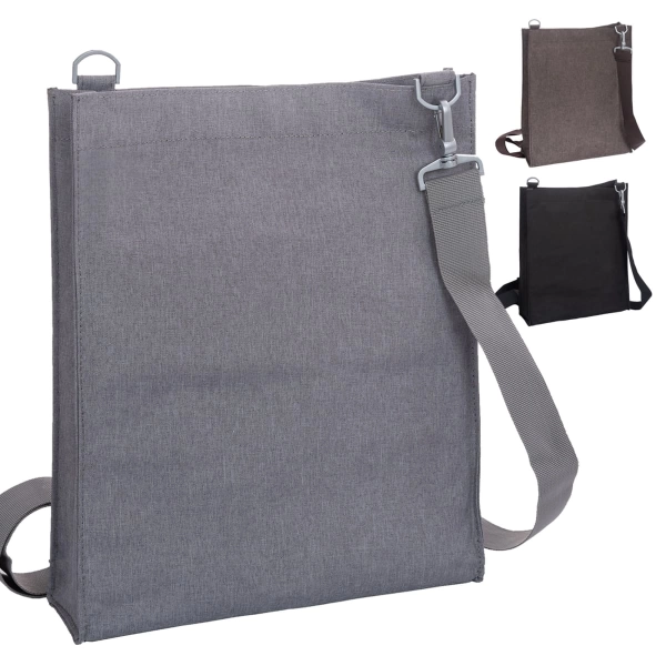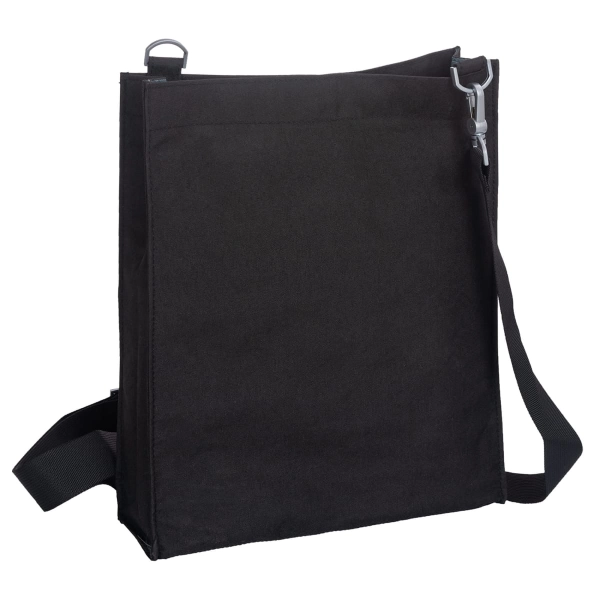 This modern stylish library bag is made from high quality nylon material. Inside the bag it has one zipped large pouch for laptop and iPad 2 small pouches for personal small items and 2 pen holders. It has one adjustable shoulder strap and a magnetic button closure on top 2 rubber pads on the bottom to protect your laptop or iPad by absorbing impact when placing the bag on a table.
