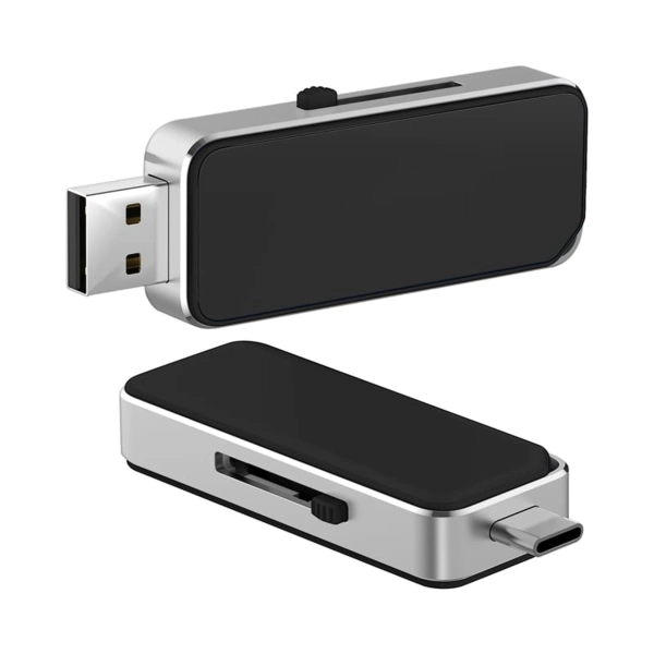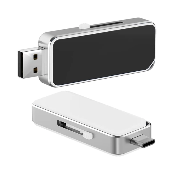The Oak Type-C LED flash drive, with its brushed aluminium body and contrasting panels, showcases the latest OTG technology and provides LED light-up or printed branding. Move the slider to the Type-C or USB connector to transfer your data between the smartphone and computer. Additional features include; A Grade memory, a 10-year data retention warranty and a 2-year faulty manufacture replacement warranty. Material: ABS, Aluminium.