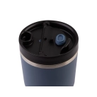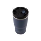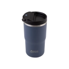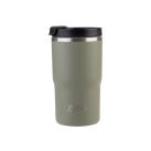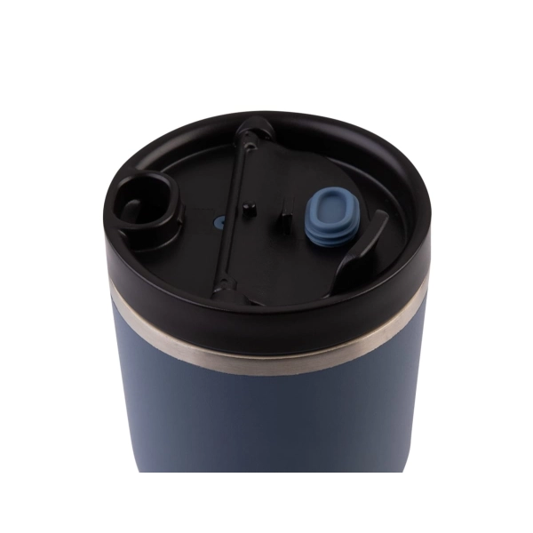 Suitable for coffee, tea, or any beverage, this travel mug features a tight-fitting flip-open screw-in lid with silicone seal designed to prevent leaks; and fits perfectly into most standard cup holders.