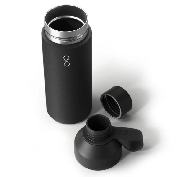 Versatile 1L double wall vacuum bottle, featuring a non-slip base and durable powder coated finish. The Ocean Bottle Big Bottle will keep your drinks hot for 6 hours and cold for 18 hours, but wont leak or sweat in your bag. The anti-leak dual opening lid makes filling and cleaning a breeze. With every purchase of the Ocean Bottle Big Vacuum Bottle, you become a global change-maker. Each Ocean Bottle sale funds the collection of 11.4 kg of ocean-bound plastic, equivalent to 1,000 plastic bottles. It's a tangible and significant contribution to reducing plastic pollution.