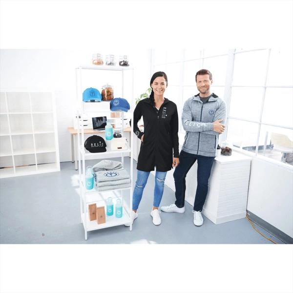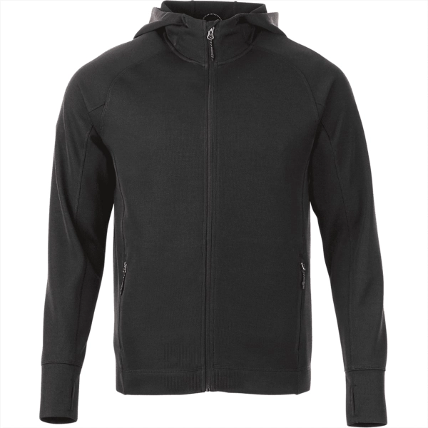 The Odell knit full zip hoody for men combines casual comfort with a distinctive, trendy look. It features moisture-wicking, breathable, polyester fabric and and has an interior media pocket that keeps your devices handy. The men's Odell hoody also features thumb exits in its sleeves and has an articulated hood to provide maximum style and mobility. Breathable and moisture-wicking for all-day comfort, media pocket for your smartphone.
