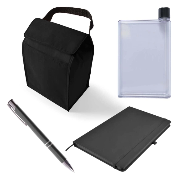 Enhance your office experience with the Office Pack, a practical and stylish set designed to meet your daily needs. This pack includes a Sumo lunch cooler to keep your meals fresh, a Venture Notebook for all your notes and ideas, an Aluminium Napier Pen for smooth writing, and a Clear Flat Drink Bottle to stay hydrated throughout the day. Available in 11 attractive colours, this pack is perfect for professionals, students, and anyone who values convenience and functionality.