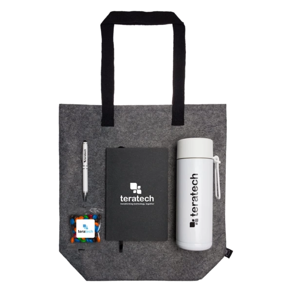 Make a great first impression with our thoughtfully curated Onboarding Bundle, designed to help new employees feel valued from day one. Packed in the Montana RPET Gusset Tote Bag, this kit includes a stylish Astro Soft Cover Recycled Leather Notebook, a sleek Columbia Aluminium Pen, a Zara 600ml Stainless Steel Bottle for on-the-go hydration, and a 50g bag of M&M's for a sweet welcome treat. Combining sustainability, practicality, and premium quality, this bundle ensures your team starts off on the right foot.