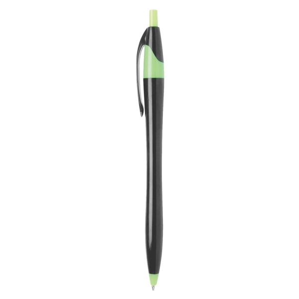 One of the most popular slim stylish plastic pen in promotions. Retractable pen with popular contoured design high quality affordable and a great solution for your next tradeshow office re-supply or give away. Black barrel with coloured push button neck and tip. Cross-type German manufactured black ink and tungsten carbide ball which brings you the better writing quality 1200 meters writing distance.