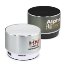 Stylish 3W, metal Bluetooth speaker which is compatible with all mobile devices that support Bluetooth. It has a wireless connectivity range of over 10 metres and can also be used with an audio cable. The speaker has a radio function, a colourful light display, a built-in microphone for phone calls and music playback can be controlled directly from the speaker. Playing time is 1.5 hours and it is easily recharged from a laptop, a power bank or a USB mains adapter. Oracle laser engraves to a natural etch and is presented in a gift box with a Micro-B USB cable, an audio cable and an instruction leaflet.