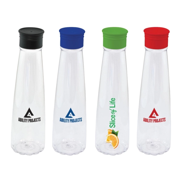Oregon Water Bottle is made from super-tough impact absorbing Tritan and features an easy to hold conical shape body with screw-off lid. Available in clear with black, blue, red or green lid.