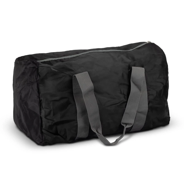Handy 28L foldaway duffle bag made from 210D polyester with strong woven carry handles. The lightweight duffle conveniently folds away into a pouch for easy storage, making it ideal for travel. When the bag is in use, the pouch discreetly zips away into the end of the duffle.