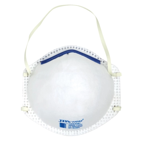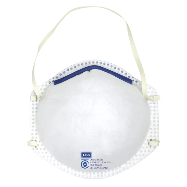 Single use cone shaped disposable respirator | Royal colour coded adjustable nose bridge for a secure fit | Twin elastic (latex free) headbands for a secure, comfortable fit and seal | Soft PU nose piece for comfort and a better seal | 20 inner packs per Carton | Certified to AS/NZS 1716:2012 P1 BMP 720690 BSI Benchmark