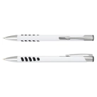 * Retractable aluminium ballpoint pen with a painted gloss white barrel