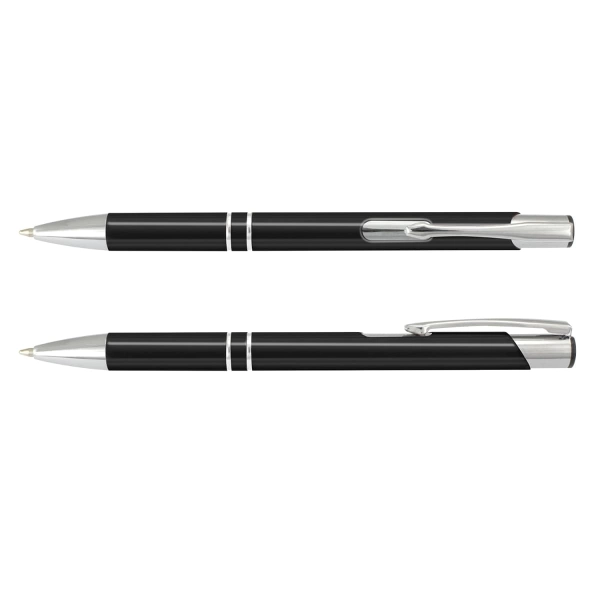 Retractable aluminium ballpoint pen with a shiny anodised coloured barrel and shiny chrome accents. It has a large volume refill with 1200 metres of blue or black German manufactured Dokumental ink. Panama can be presented in an optional pen sleeve. This product is also available on indent with a lead time of 20 weeks.