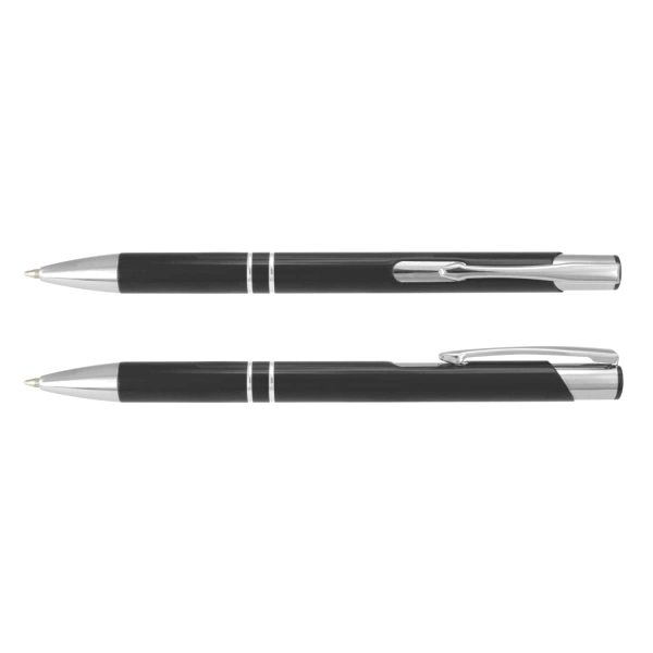 Retractable aluminium ballpoint pen with a lacquered barrel and shiny chrome accents. It has a large volume refill with 1200 metres of black German manufactured Dokumental ink. Panama can be presented in an optional pen sleeve. The black and white pens have the option of blue ink.