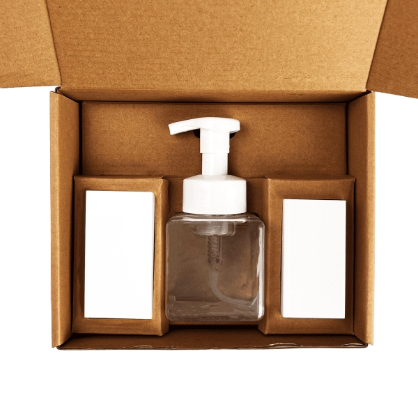 Introducing the Paper Soap and Bottle Gift Set, a thoughtful combination of hand soap sheets, detergent sheets, and the Glenn Foaming Dispenser. Ideal for corporate gifting or hampers, this set is both practical and elegant, leaving a lasting impression with its functionality and charm. The hand soap and detergent sheets are Infused with natural moisturizers that leave skin soft and supple. The gentle formula creates a luxurious lather that won't dry out your skin, ideal for both adults and kids, even for the most sensitive skin. All ingredients contain no harsh chemicals. Gift set contains 2x HSP001 Travel Paper Soap Sheets, 1x HSP002 Glenn Foaming Soap Dispenser and 1x HSP003 Laundry Detergent Sheets.