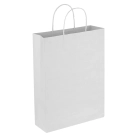 A4 size paper bag with strong paper rope handles made of 150gsm kraft paper. Ideal for holding A4 size documents books and catalogues. A great bag for shows library and church.