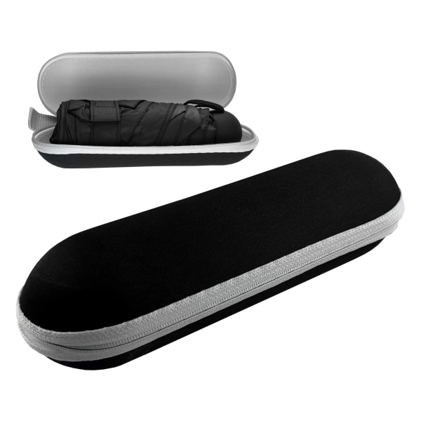 This portable tri-folding Paraflex Umbrella is a lightweight rain or shine dual-use umbrella. It has six-panel pongee canopy with 50cm black steel ribs and shaft. Strong 190T showerproof pongee canopy with a velcro tie and a ball shape plastic handle with a soft strap. Comes with a black capsule-shaped hard zip carry case. This compact umbrella is so handy and easy to carry it with you in your car handbag or children's school bag.
