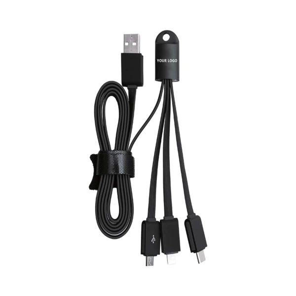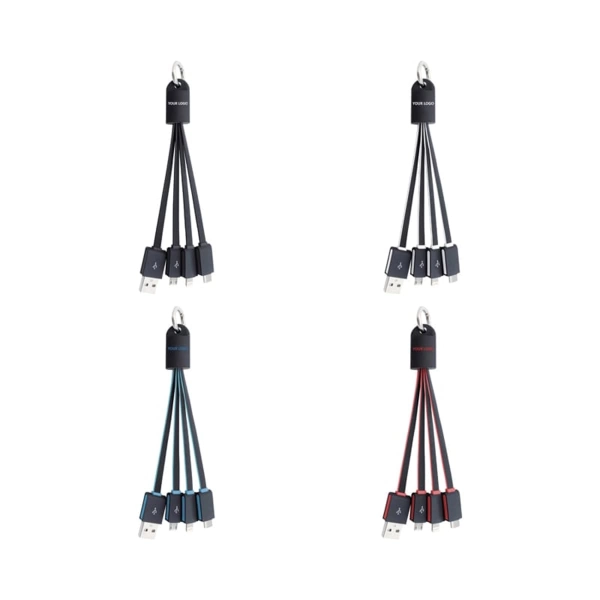 The Parma single-sided light up charge cable is available in 2 standard cable lengths, 15 cm or 100 cm and 4 standard colour configurations. Manufactured from high grade 24 AWG copper with an anti-tangle soft-touch TPE exterior, the Parma includes a metal snap ring for easy attachment. This cable is suitable for all mobile devices, power banks and wall adapters. It provides USB to Micro USB, Type-C and 6 Pin (iOS) connectivity to charge your devices. Material: ABS, TPE.
