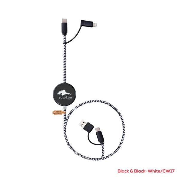 The Pavia LED charge cable features illuminating branding to bring your logo to life. It provides an output power of 60W (max) and supports high-speed charging and data transfer speeds of up to 480 Mbps. This versatile cable can charge iPhone and Android smartphones, tablets, laptops, and all other USB-powered devices. The Pavia is eco-friendly, using 60% recycled materials and high-quality copper wire. Its Lightning and Type-C charging connectors are compatible with most new devices and support QC2.0, QC3.0, 60W Power Delivery, Samsung Fast Charging, Android Auto, and Apple CarPlay. Additionally, the Pavia comes in a customised recycled kraft box to enhance your brand. Material: RTPE, RABS, RPE, RPET, Copper.