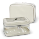 Stylish 3L cosmetic bag made from water-resistant 300D polyester with PVC panelling. The contents of the bag are easily visible through the clear panels, and the double-zippered closure allows for easy access while keeping items secure. This easy-to-clean cosmetic bag is the perfect travel companion.