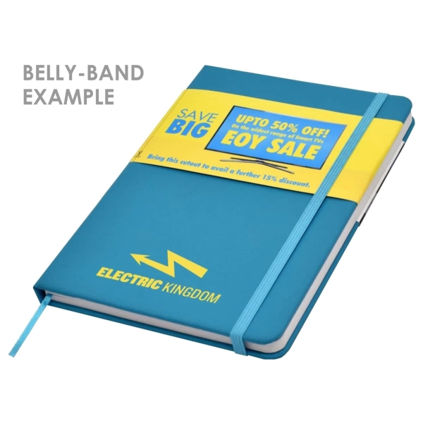 This quality A5 notepad features a leather-feel PU cover, colour co-ordinated elastic closure and designer matching pen. If you’re after a debossed notebook, check these out!