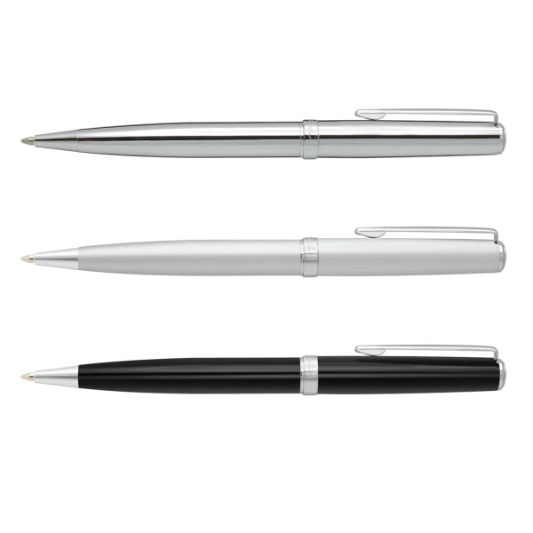 * Timeless twist-action brass ballpoint pen with shiny chrome trim