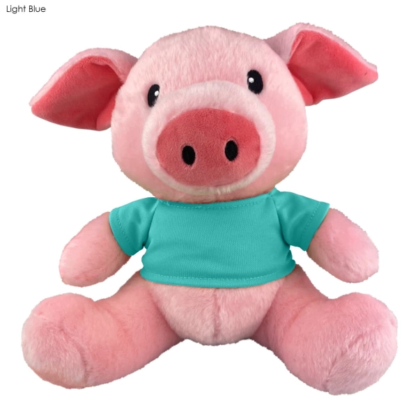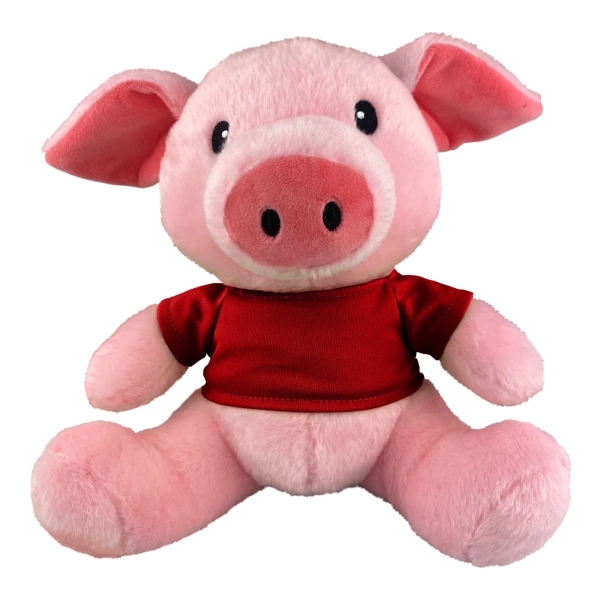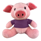 This soft sitting pig plush toy is made of soft plush cover and stuffed with fluffy stuffing with bead eyes and optional polyester T-Shirt in 11 colours are available. This cute cuddly pig plush toy is a great way to display your logo and get your message across.