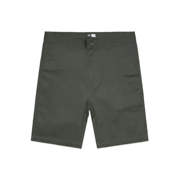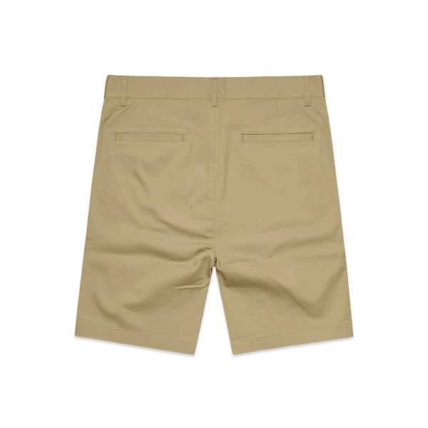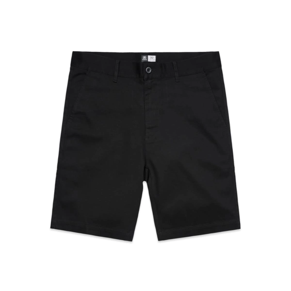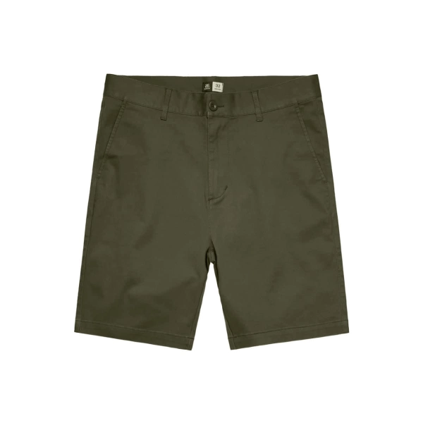 Chino shorts, 2 side pockets, jet pockets at back, belt loops on waist, button closure, anti-brass metal YKK zip fly, preshrunk to minimise shrinkage