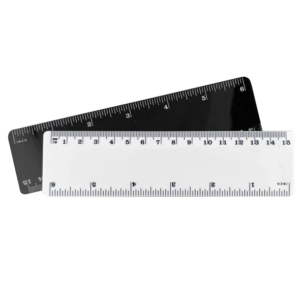 Solid 15cm plastic ruler with one side graduation in centimetres.