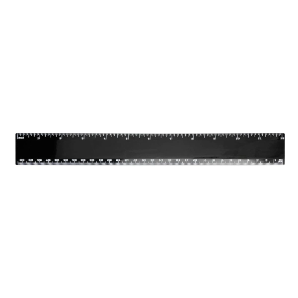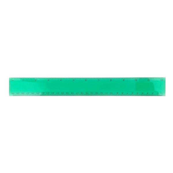 30cm plastic ruler with both sides graduations in centimetres and inches.