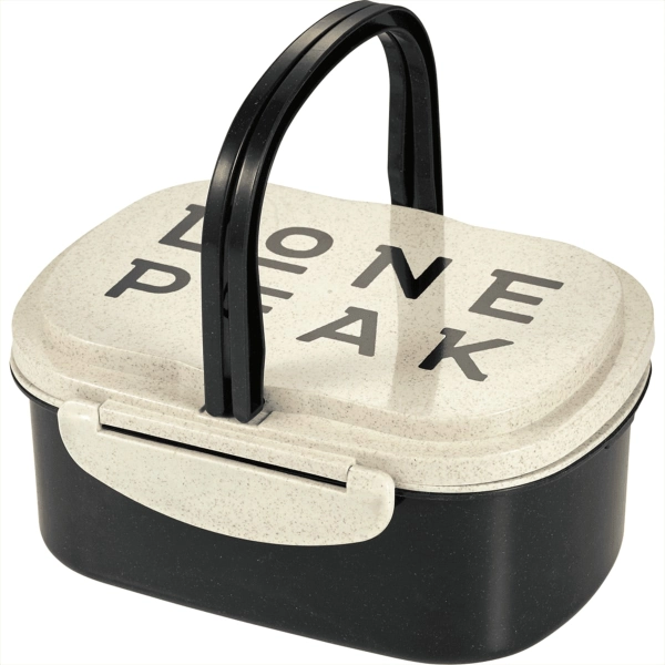 This item features a tray to keep your food separated and a locking lid with handles for carrying. Made of 30% Wheat Straw + 70% polypropylene. Dishwasher and Microwave Safe