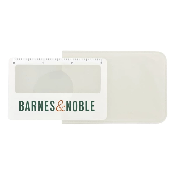 The Pocket Ruler Magnifier with Sleeve is a paper-thin, rectangular magnifier conveniently housed in a protective plastic sleeve. It’s a practical tool for reading or measuring, with U.S. measurements available for your convenience.