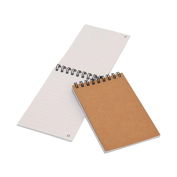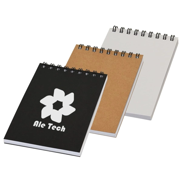 The Pocket Spiral Notebook is compact and eco-friendly, with 100 recycled lined pages. Available with Black, White, and Natural covers, its pocket size and durable wiro binding make it perfect for notes on the go.