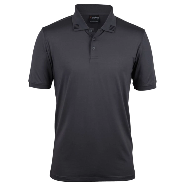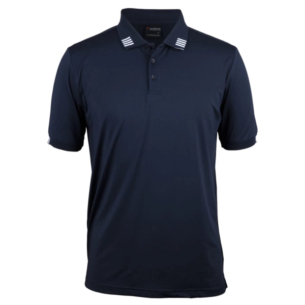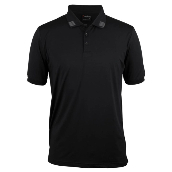 Urban fit | 93% Polyester for durability, and 7% Elastane for comfort | 170gsm stretch fabric | Podium Cool™ moisture wicking fabric to keep you cool and dry | Complies with Standard AS 4399:2020 for UPF Protection (UPF 50+) | Double sided jacquard collar and sleeve cuff with 4 contrast colour stripes | 3 Button placket | Straight hem with side split