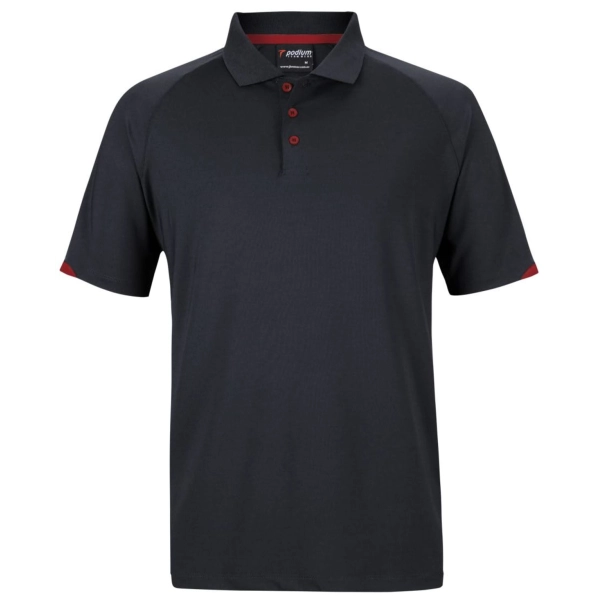 Urban Fit | 93% Polyester for durability, and 7% Elastane for comfort, 170gsm stretch fabric | Podium Cool™ moisture wicking fabric designed to help keep you cool and dry | Raglan sleeve design with contrast colour arc on sleeve, side split, buttons and inner back neck tape | 3 Button placket | Straight hem with side split | Complies with Standard AS 4399:2020 for UPF Protection (UPF 50+)