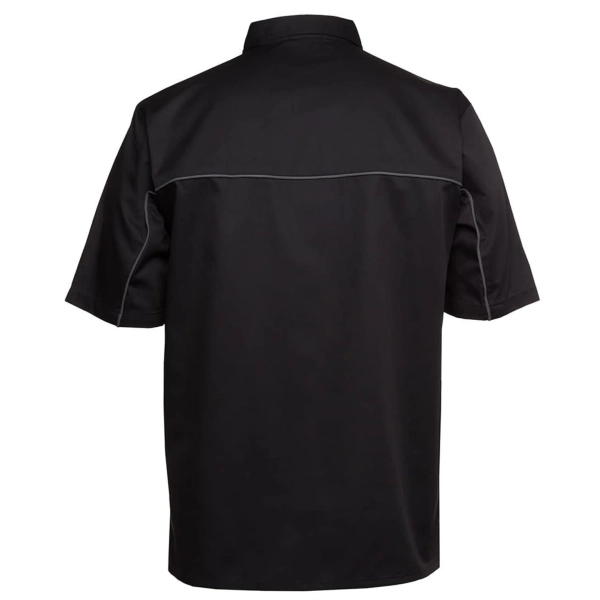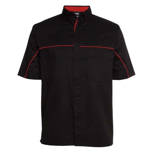 Classic fit | 65% polyester for durability, and 35% cotton for comfort | 145gsm easy care twill fabric | Two chest pockets with hook pile tape closure | Button down collar | Contrast piping along shoulder and sleeve | Concealed placket with bar tack | Straight hem with side split