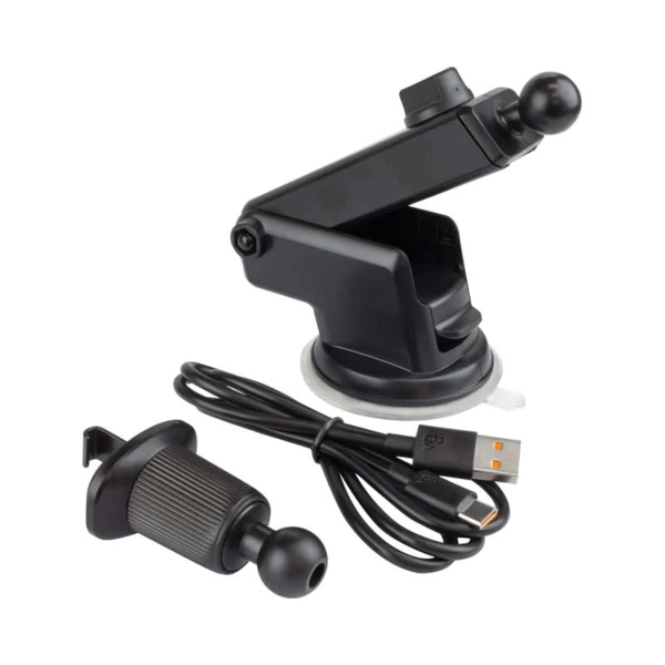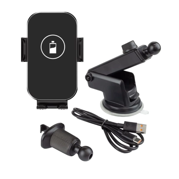 Introducing the Poole 15W Fast Wireless Charger - a versatile solution for on-the-go smartphone charging. Mount it on your vehicle’s air vents, front window, or dashboard for multiple viewing options and a secure smartphone location while driving. The touch sensor mechanism ensures easy cradle operation, compatible with iPhone and Android smartphones (4.7 to 6.9 inches). Personalise with a light-up or printed logo. Safety features include Foreign Object Detection and over-current protection. Stay charged and connected with the Poole – style, convenience, and safety in one. Includes a Type-C charge cable, vent mount, adjustable suction mount and user manual. Material: ABS, PC. Aluminium, Silicone.