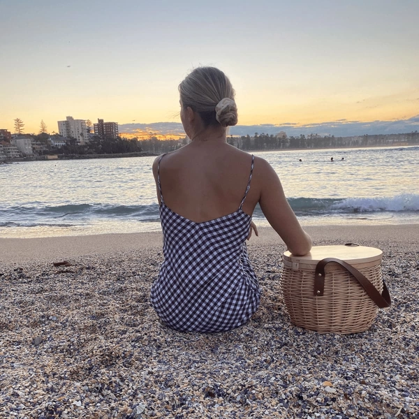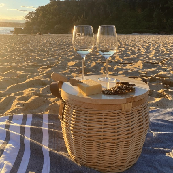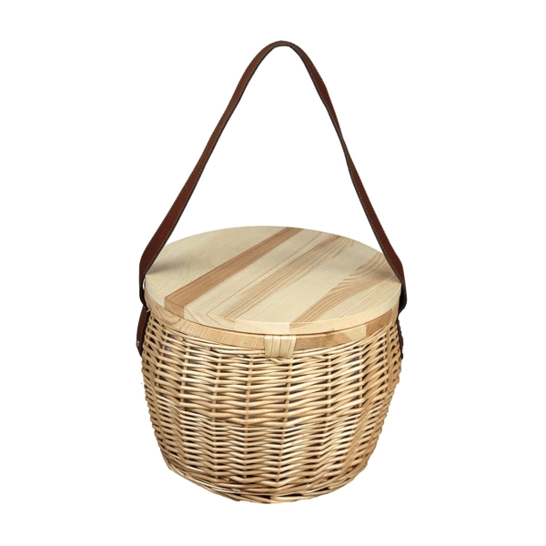 The perfect companion for any picnic or party. The handmade basket includes internal insulated lining with a zippered cover. The timber board is made from lacquered pine wood and the basket is supplied with one shoulder strap. Not recommended as a cheese board.