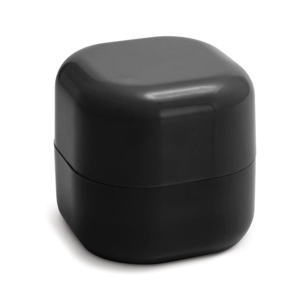 Trendy lip balm ball in a smart square case which provides a large branding opportunity on the top. It has a pleasant fragrance, a secure twist cap and a tear away ingredients label.