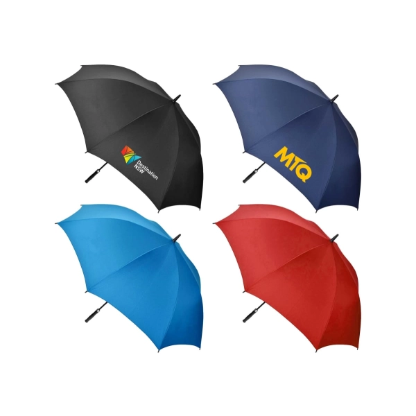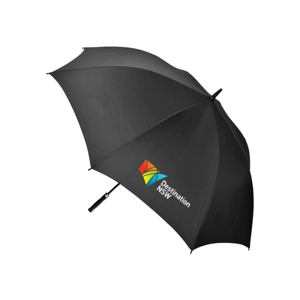 The Promo 30″ Auto Golf Umbrella offers great value without compromising on quality. This full-size, 8-panel umbrella features an automatic open function, sturdy fibreglass shaft and ribs, a non-slip rubber end, and an ergonomic ‘Comfort Grip’ handle. Available in 8 popular stock colours and made from durable 190T Pongee fabric, it’s built to last. Your logo can be prominently printed on the panels or elegantly displayed on the wide closing strap – perfect for visibility even when closed.