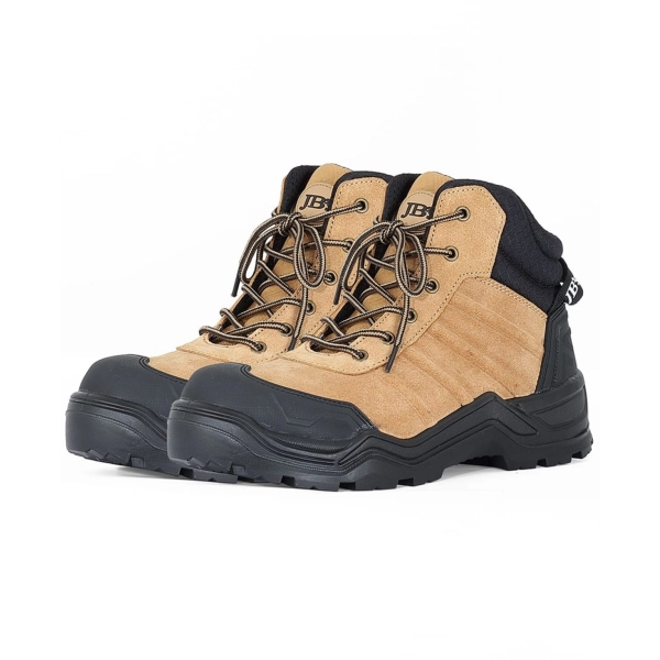 PU/PU injection sole | Puncture proof non-metal mid sole plate | 200J impact resistant composite toe cap | Fully lined with polyester mesh | TPU heel rear protector, TPU front over cap, YKK zipper, zip opening with hook & pile tape | Shock absorbent heel | Oil Resistant, Anti-Static, SRC Slip resistant Sole | Removable PU insock | Meets AS 2210.3:2019 Certified by BSI BMP No 702610 | Individually boxed, carton of 5