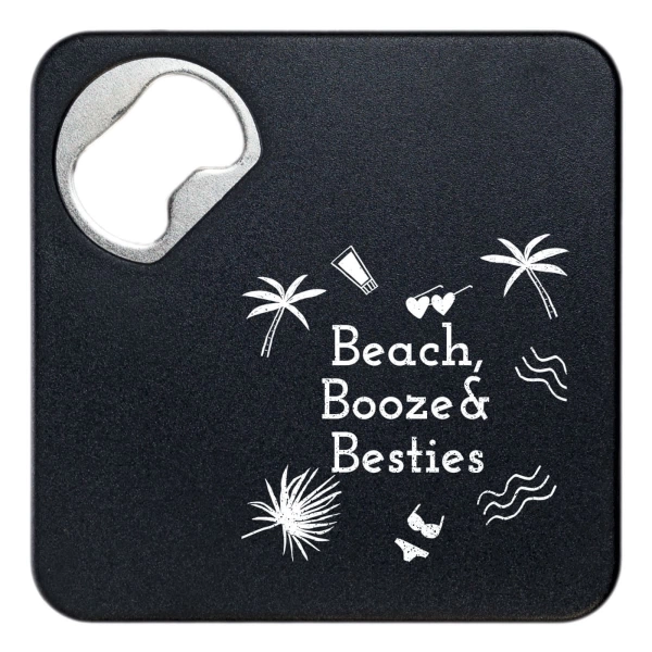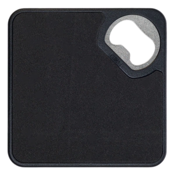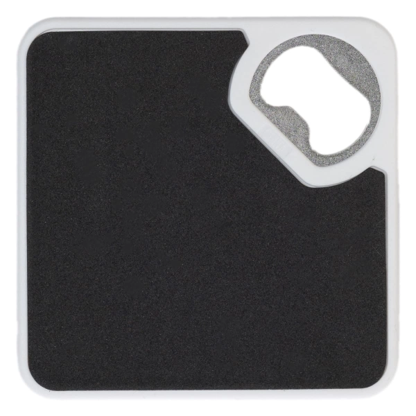 Introducing the Quench Bottle Opener / Coaster, your versatile companion for entertaining. This combination features a nickel-plated steel bottle opener integrated into a coaster, with EVA foam on the back for stability and surface protection. Available in black or white, it offers a great full cover print area, making it ideal for personalization and promotional use.