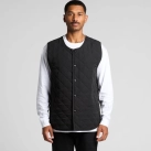 The AS Colour Men's Quilted Vest. Mid weight with a 100% recycled polyester quilted lining & 100% recycled polyester wadding outer. This collarless vest style features two side pockets, a snap dome to close, and a curved hem.