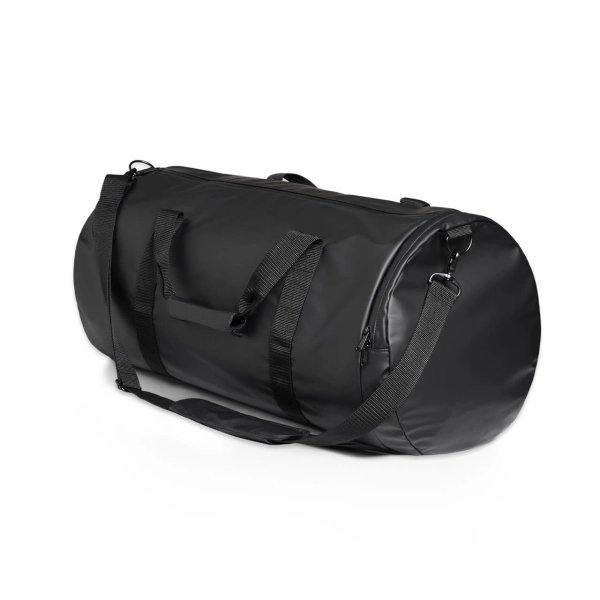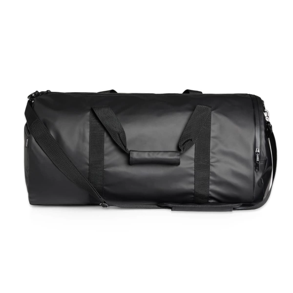 One large main compartment with a small internal zip compartment, one external zipped shoe compartment, aqua guard zippers on external accesses, reinforced adjustable shoulder strap and handles