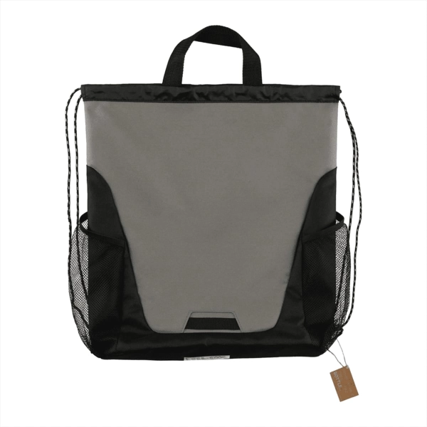 The Rainier Recycled Drawstring Bag is made from recycled 600D polyester with recycled 210D polyester accents.