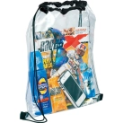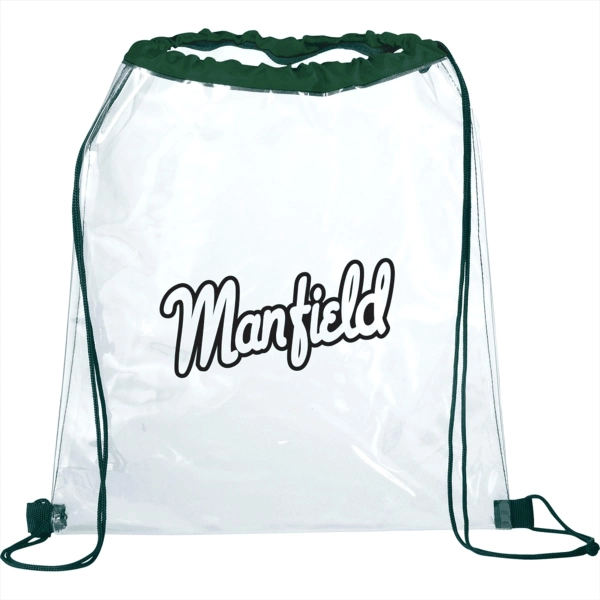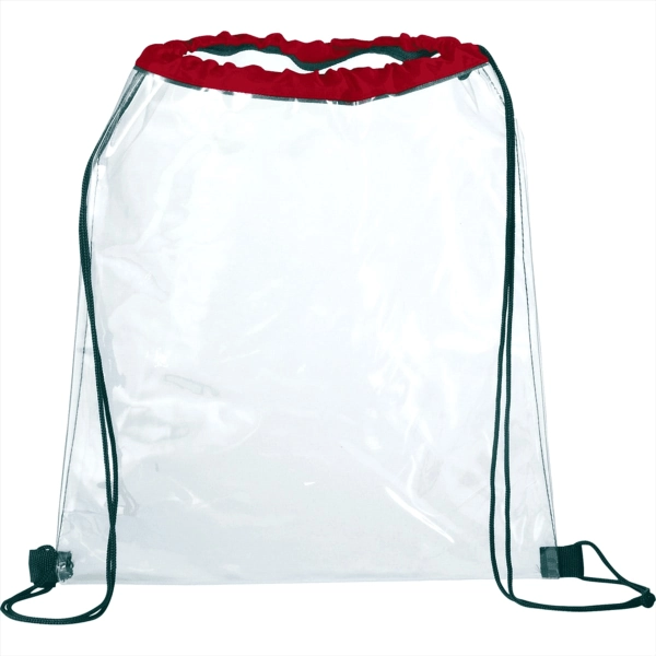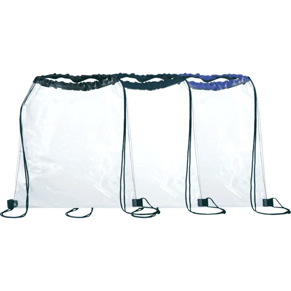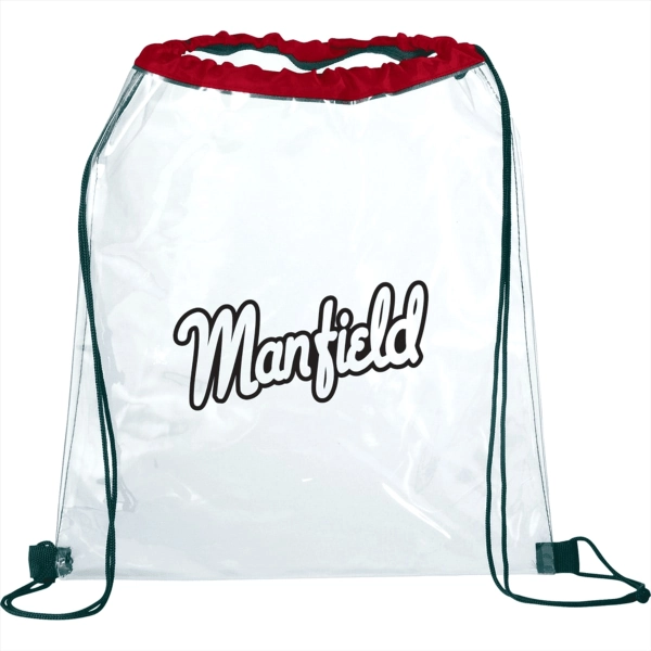 Clear material makes this bag perfect for stadium, event, workplace and other safety purposes. Open main compartment with drawstring rope closure.