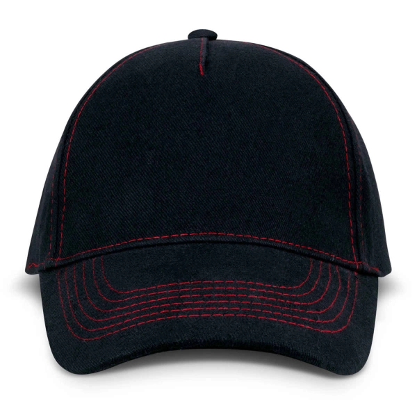 Stylish 100% cotton 5 panel curved peaked cap with a coloured stitching that matches the logo. It features an adjustable stainless steel buckle, ensuring a comfortable fit for most head sizes.