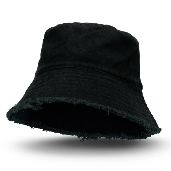 Stylish bucket hat made from 100% cotton twill featuring an edgy frayed finish and a built-in sweatband. It is available in two sizes, which will fit most people.